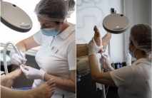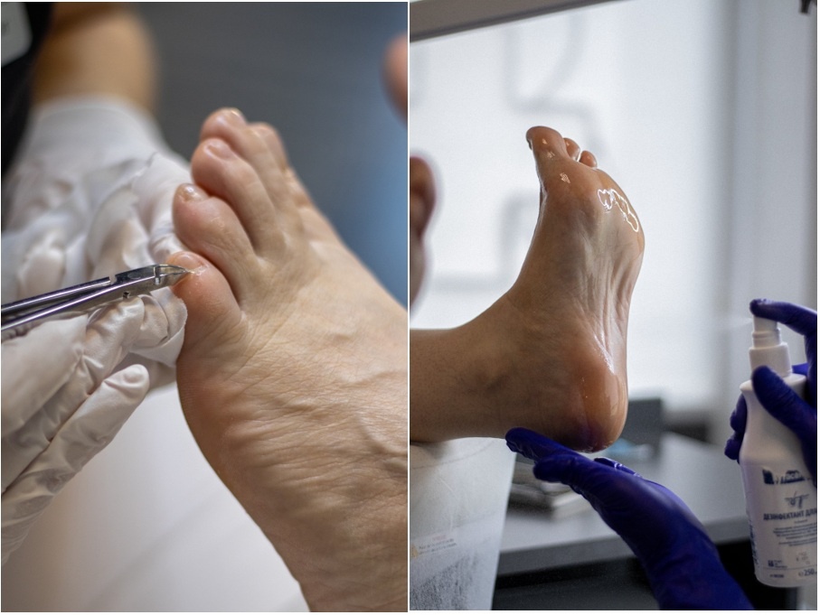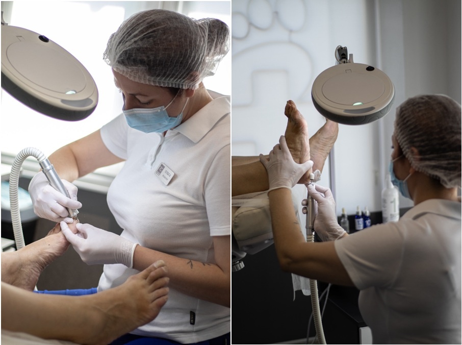 Серед основних напрямів роботи — апаратний педикюр, обробка тріщин і мозолів, корекція врослих нігтів, протезування нігтьової пластини, лікування грибкових уражень, а також виготовлення індивідуальних ортопедичних устілок. Ми також проводимо діагностику стопи на плантографі для виявлення порушень постави чи навантаження.